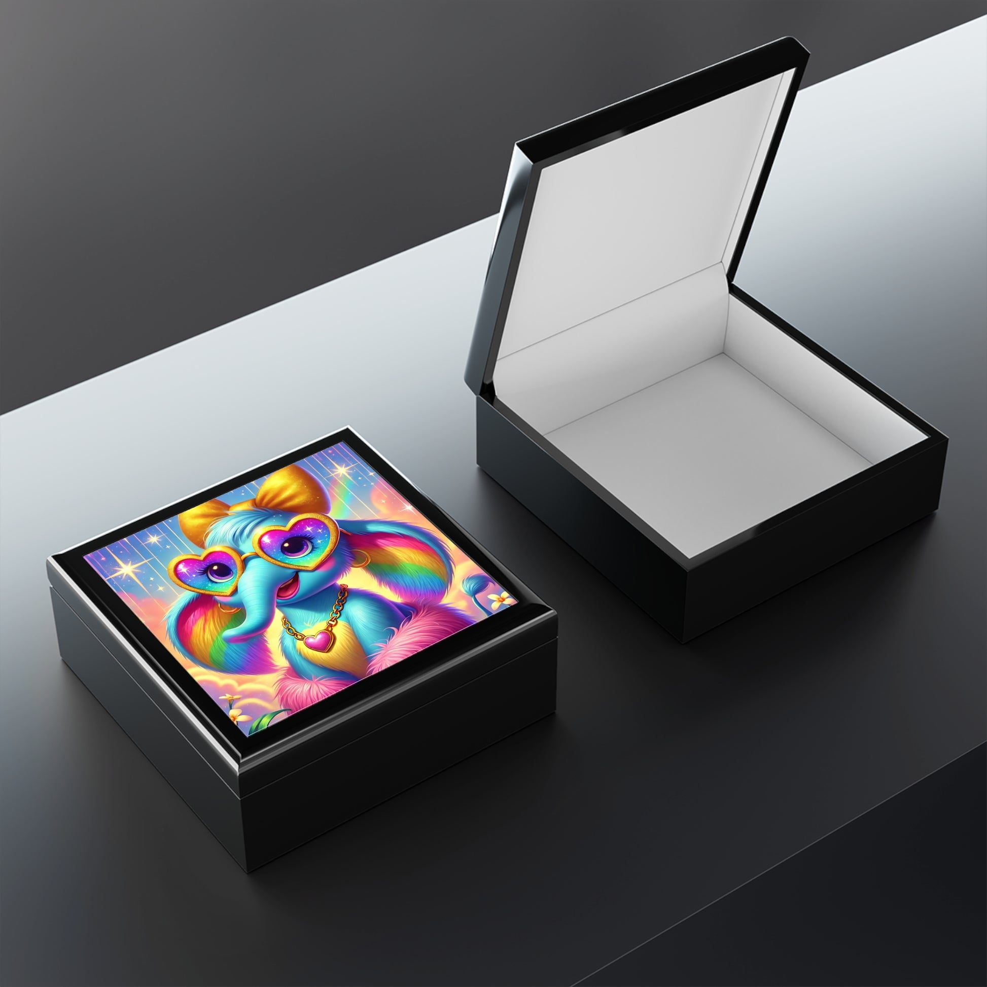 Let Ellie the Elegant Elephant from the Colorful Kingdom of Imaginaria bring calm, creativity, and grace to your cherished keepsakes! With her gentle rainbow hues, heart-shaped glasses, and kind spirit, Ellie makes this sleek jewelry box the perfect home for your special treasures. Whether itβs rings, earrings, or tiny mementos, Ellie reminds you to treat yourself with care and creativity!