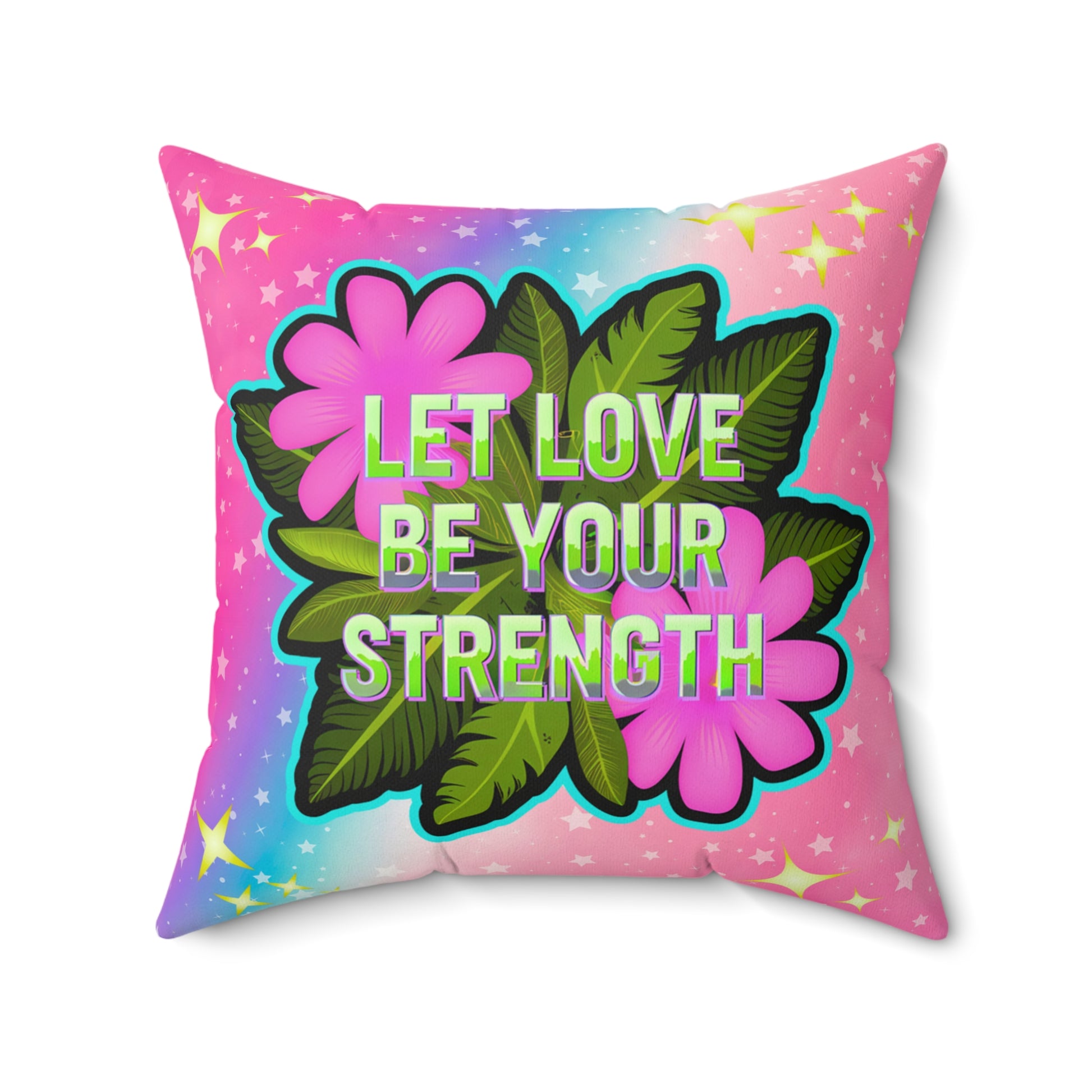 Gogo the Gentle Gorilla Faux Suede Throw Pillow – “Let Love Be Your Strength” Quote | Imaginaria Home Decor