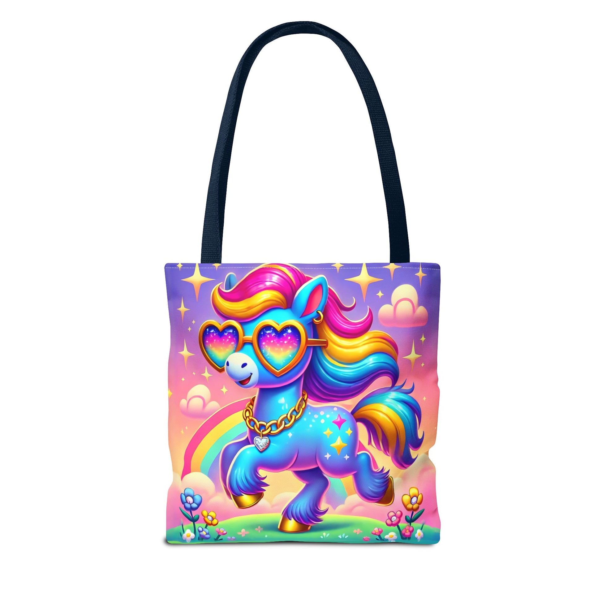 Bring a splash of color and happiness wherever you go with Harmony the Happy Horse from the Colorful Kingdom of Imaginaria! This vibrant tote bag features Harmony in full gallop, radiating joy and confidence with her rainbow mane, heart-shaped shades, and glittery personality. Sheβs ready to join you on every adventureβwhether itβs a quick trip to the store or a journey into the great unknown!