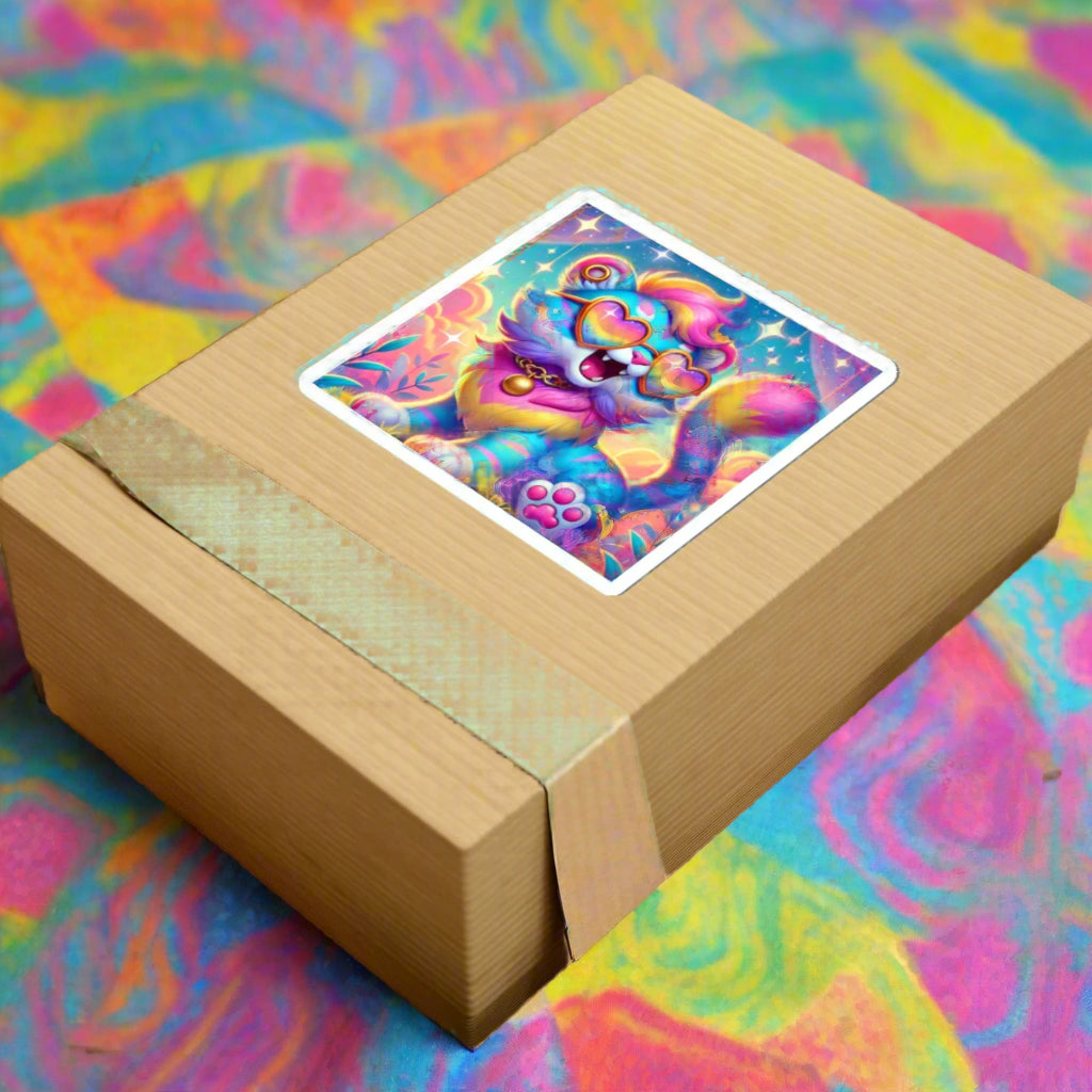 Stick a little magic wherever you go! 🐾🌈💖 Bring the bold, playful energy of Luna the Rainbow Cat from the Colorful Kingdom of Imaginaria into your everyday world! This vibrant vinyl sticker features Luna with her cosmic heart glasses, rainbow stripes, and curious spirit—perfect for brightening up laptops, water bottles, notebooks, and more.